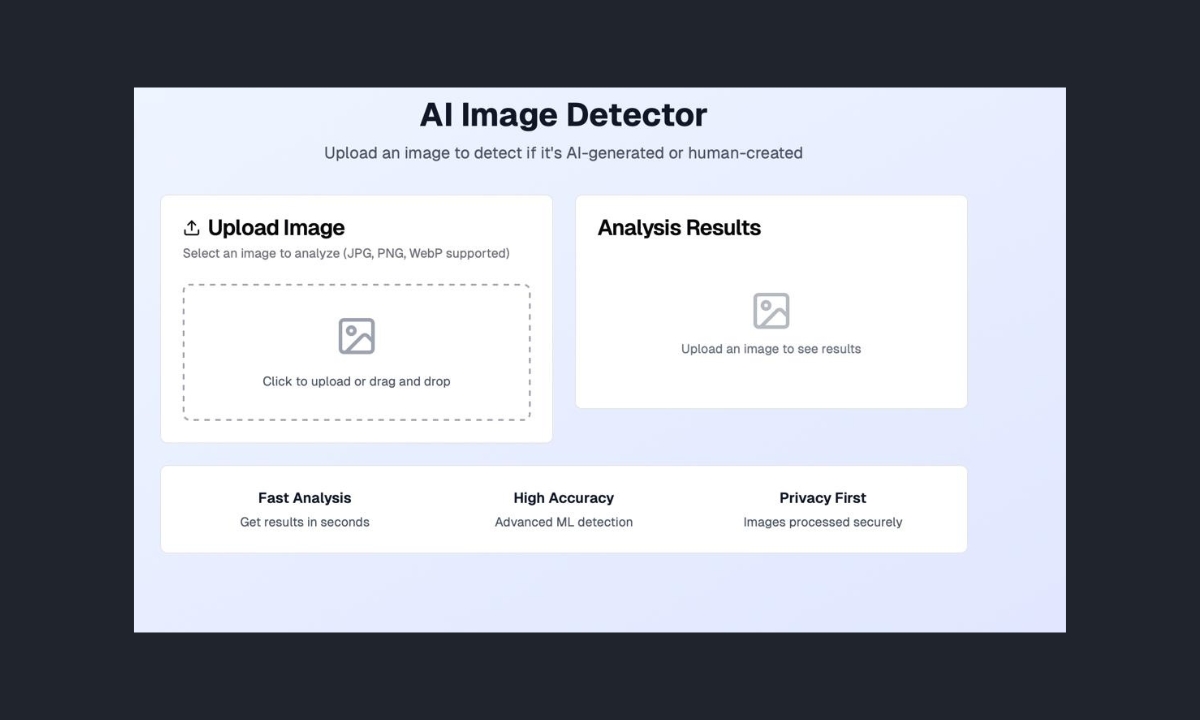 This web app detects whether an image is AI-generated or real using a Convolutional Neural Network. Simply upload an image, and get instant results with confidence scores.