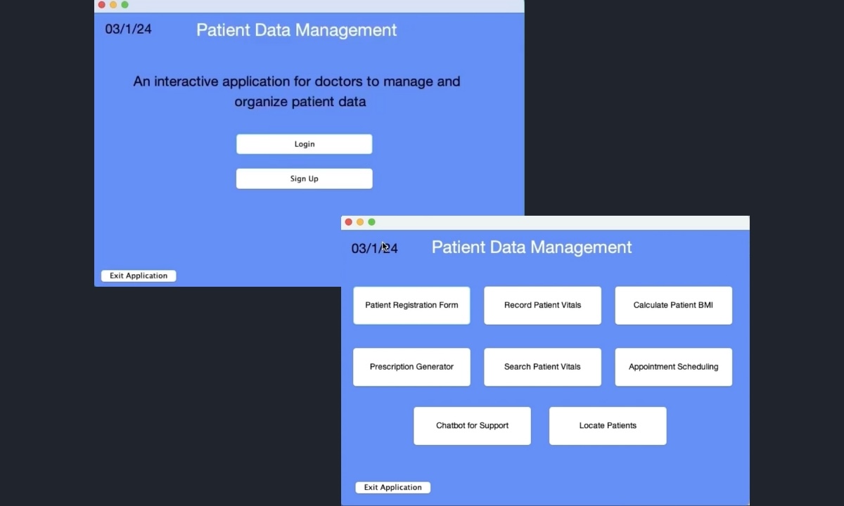 Desktop App for doctors to manage patient data such as medical vitals and biological info. Features such as Appointment Scheduler, Medical Prescription Generator, BMI Calculator, Chatbot etc. Creates visual representation like graphs and charts of patient vitals. All data stored locally in a database
